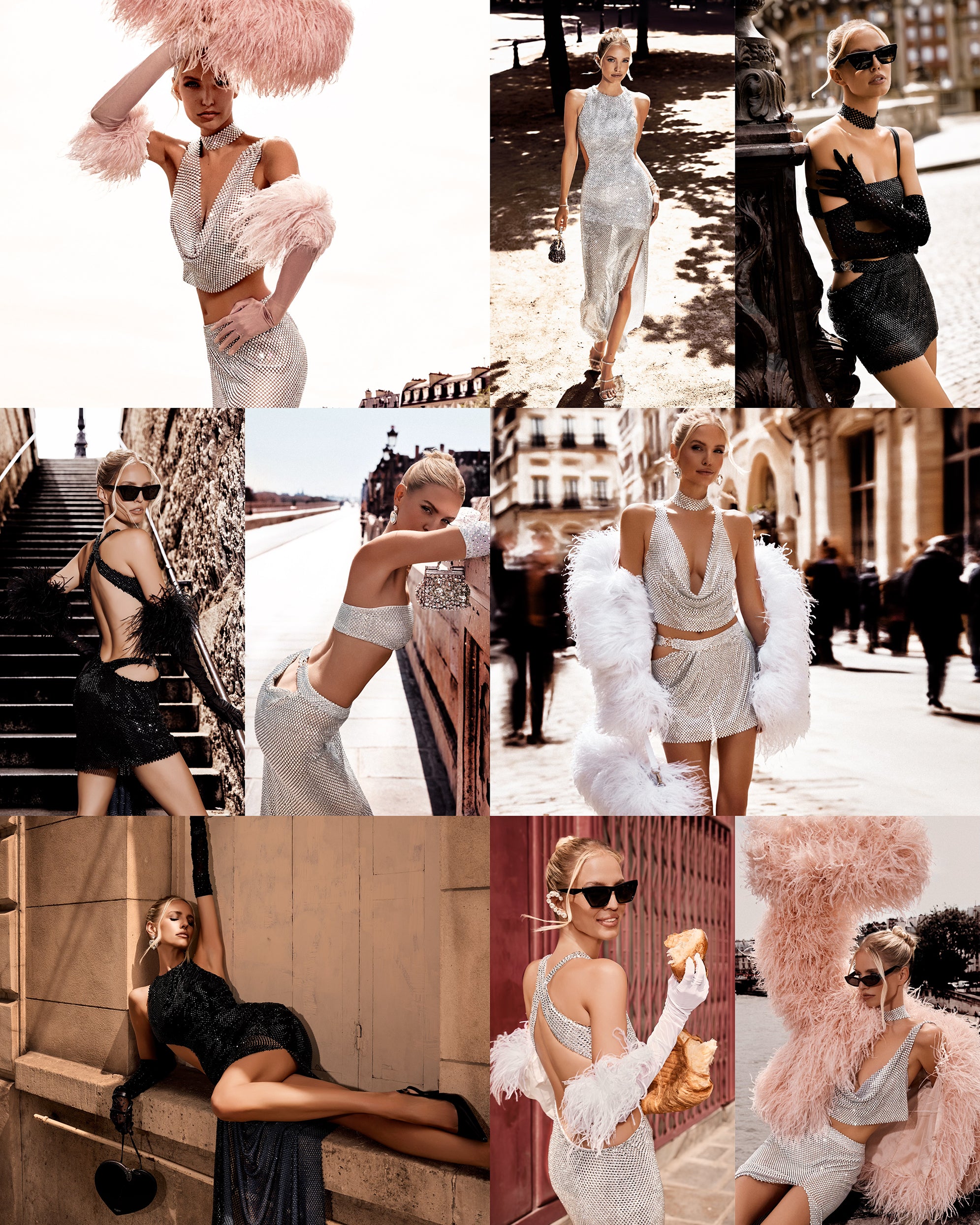 The second collaboration came in August 2024, in creative partnership with long-time SANTA muse Leonie Hanne. This project marked a new chapter, where muse became co-creator, helping shape a collection that spoke in both her voice and ours. Together, we created a collection that captured the essence of both SANTA and Leonie in perfect synergy.