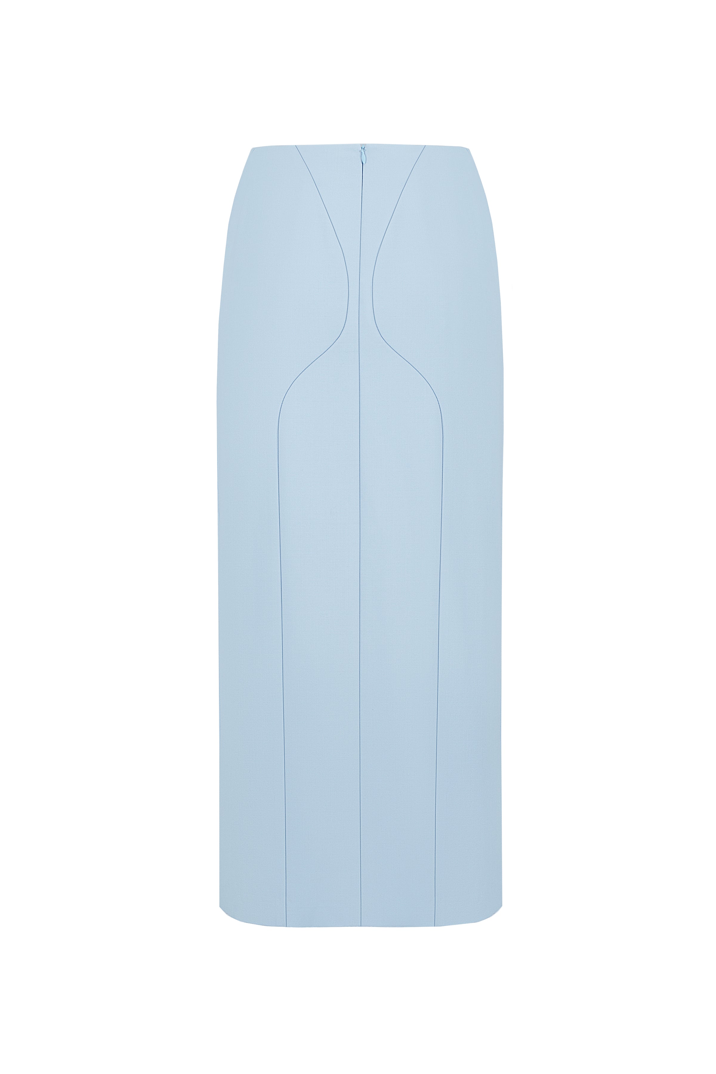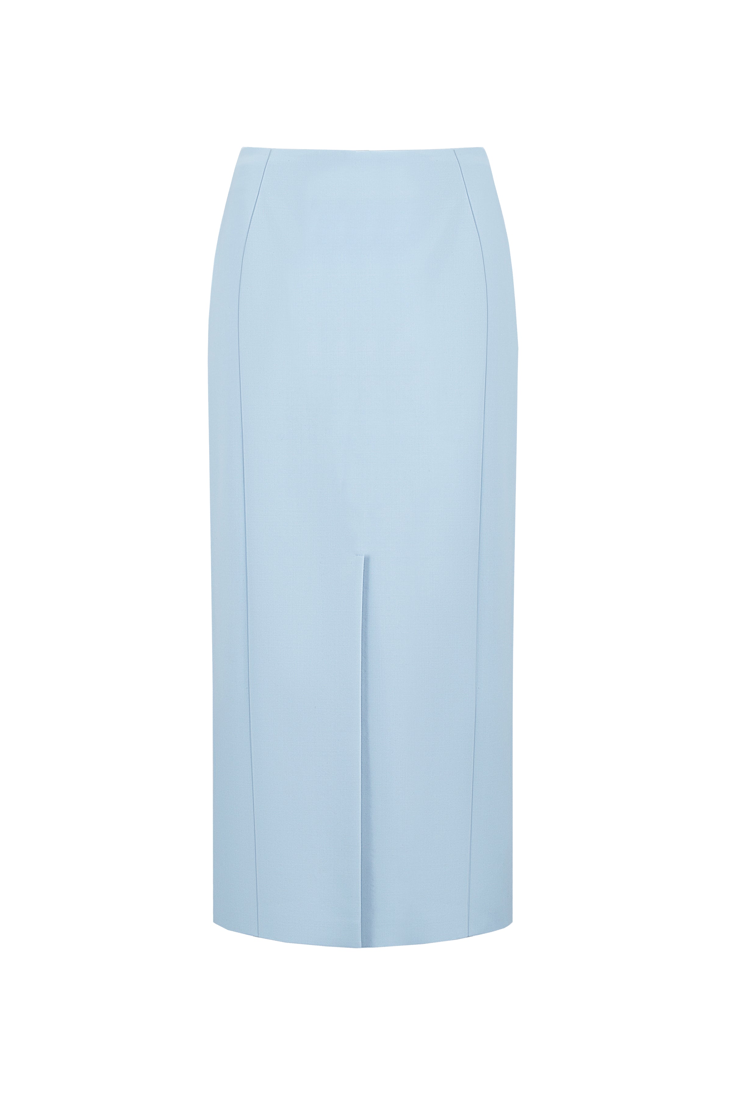 A soft pastel blue midi skirt designed with clean silhouette lines that gently highlight your figure. Crafted from a comfortable blend of viscose, polyester, wool, and elastane, it offers a smooth fit and effortless elegance for everyday styling. Perfect to pair with basic tops, sweaters, or shirts.